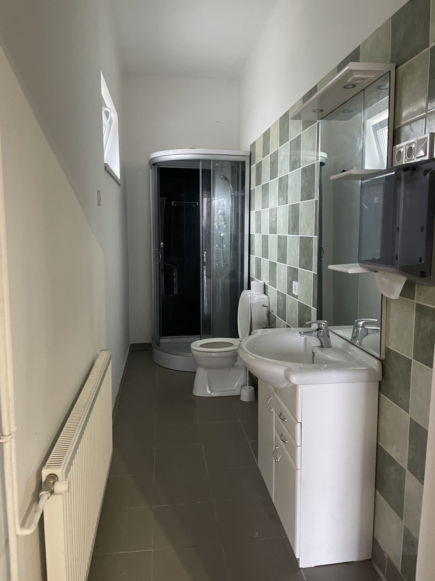 A szobákban laminált lapok, folyosón, konyhában, fürdőszobákban hidegburkolatok lettek beépítve.