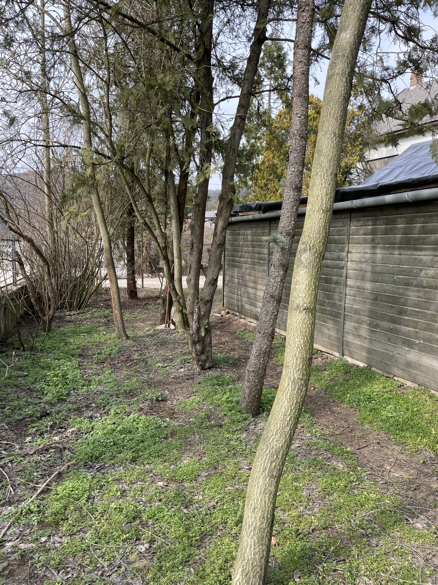 több gépkocsi számára van beállási lehetőség, kerti tárolók, gyümölcsfák vagy akár
