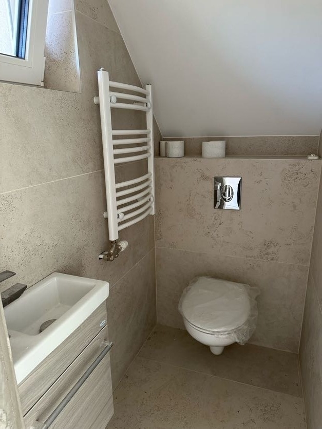 Fűtés: Viesmann kondenzációs gázkazán (radiátoros és padlófűtés kombinációja) + fűtésre optimalizált Gree klíma