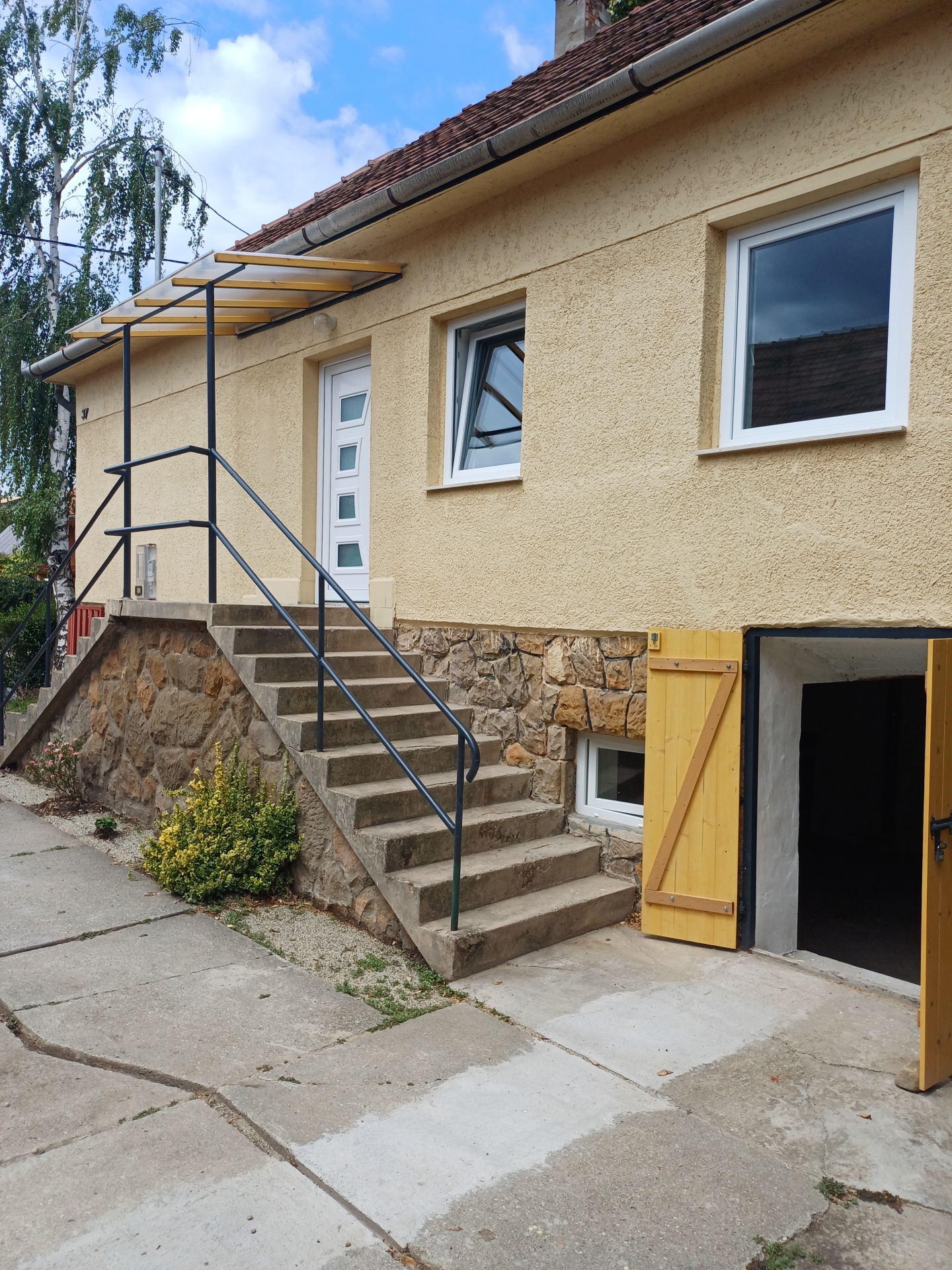 A szintén felújitott kb 25 m2-es pincében egy mosókonyha rész lett kialakitva.