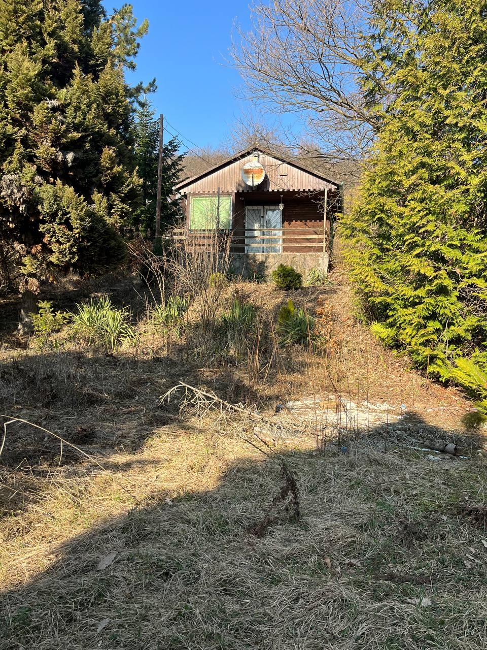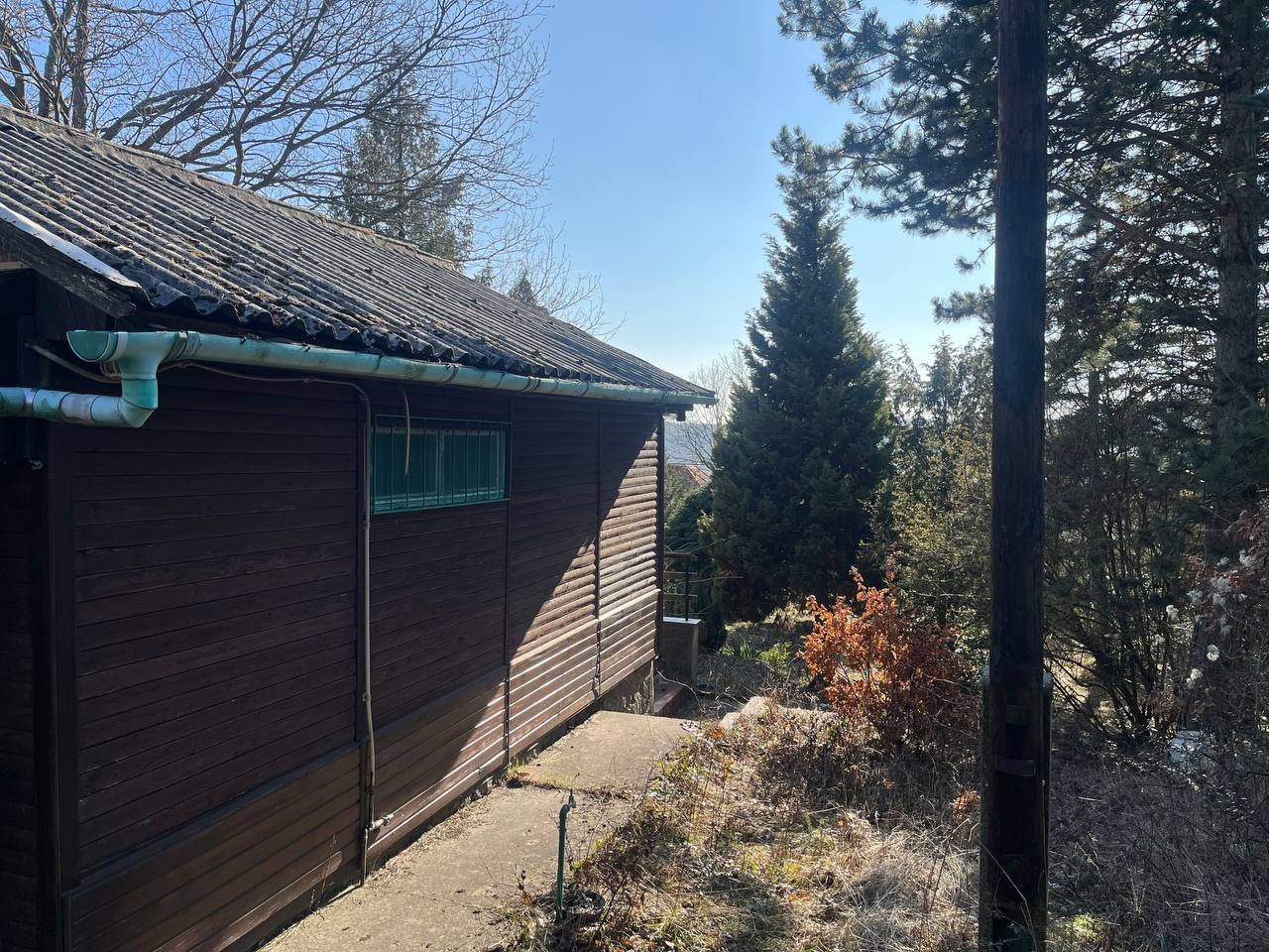 A telek az utcafront felől emelkedik, rajta érett növényzet, egy 36 nm-es faház, víz és villany közmű található. A kert valamikor szépen volt parkosítva, egy kis munkával ismét széppé varázsolható. A terület másik fele ugyanekkora, el van kerítve, de az a társtulajdonosé.
