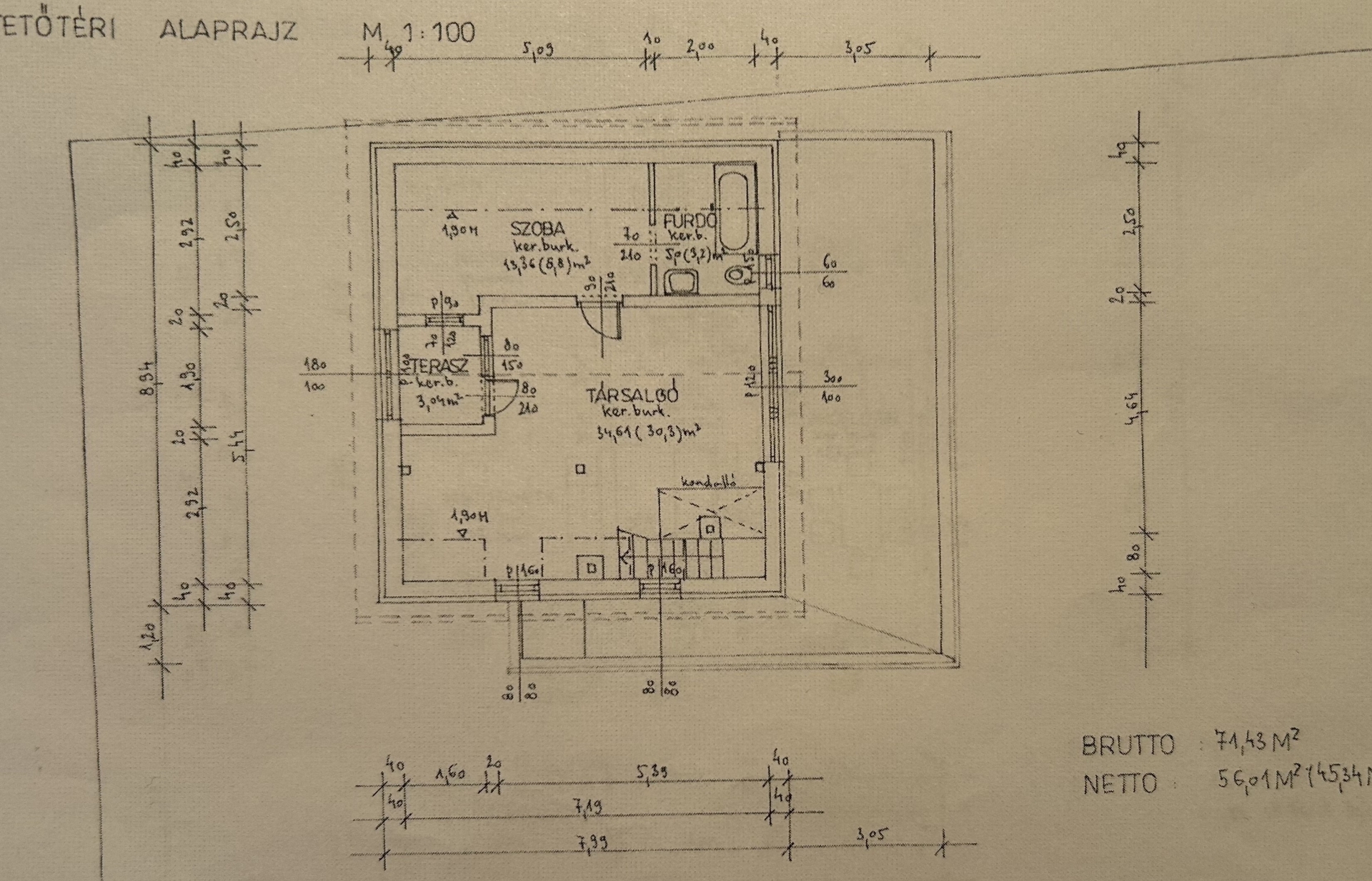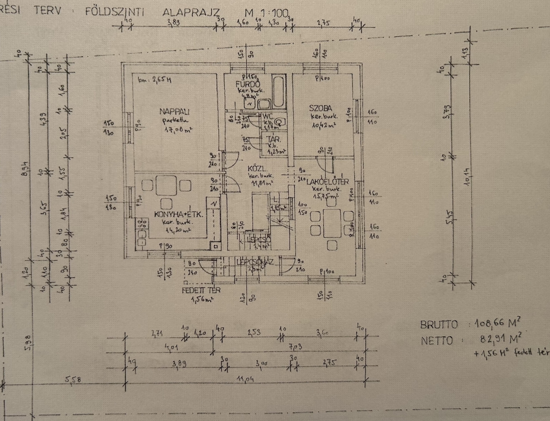 -lakószinten: előtré, 2+1 fél szoba, nagy konyha, fürdőszoba, WC