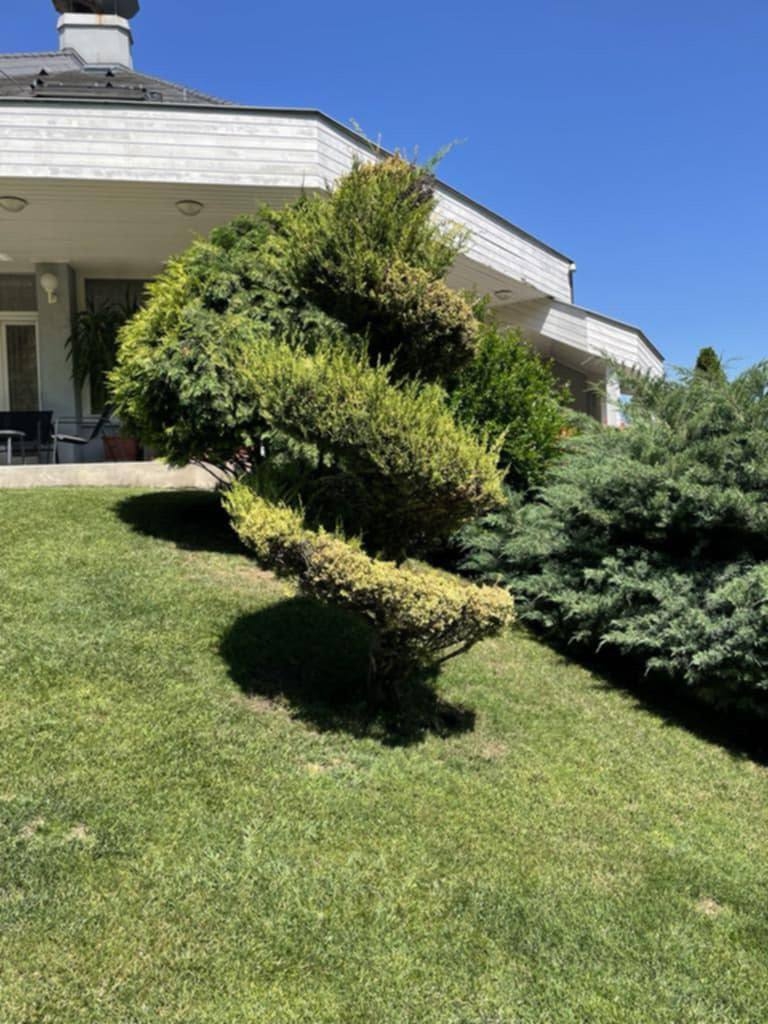 A gyönyörűen parkosított kert jól körbenapozott, nagy része füves, körben igényesen bokrokkal beültetve , de egy kis veteményes kert is kialakításra került.