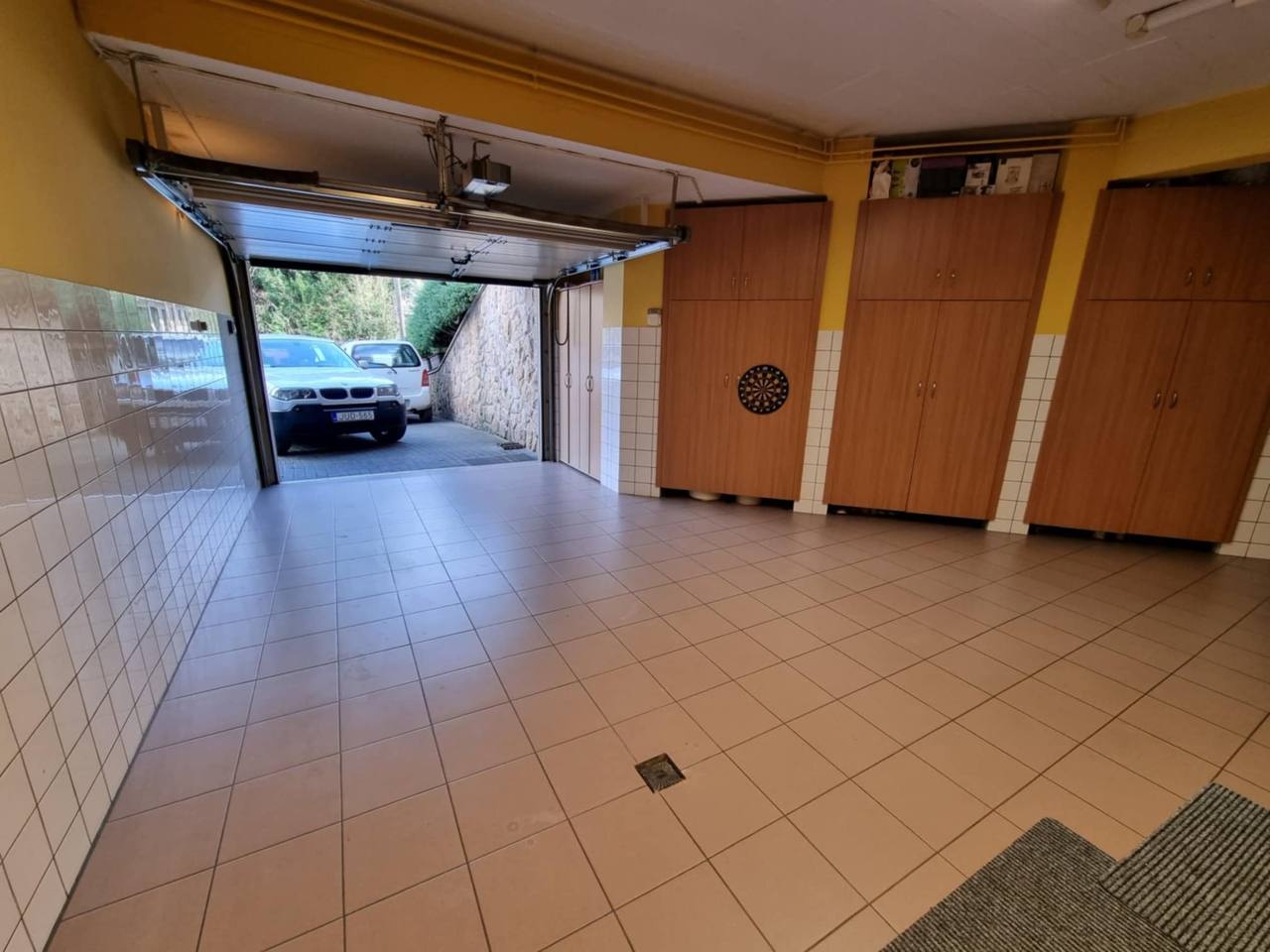 A 388 nm lakófelülettel rendelkező ház alsó szintjén a 60 nm-es két állásos garázs mögött előszoba ,egy szoba, konyha, fürdőszoba, mosókonyha, zuhanyzó, wc épült.