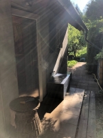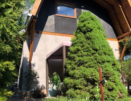 Az udvaron kis melléképület, magaságyások, gyümölcsfák, gyógynövények, a szomszéd ingatlanok szépen rendezettek.