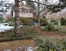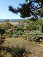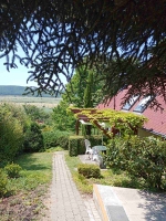 A telek 1356 nm, 15 m széles, lejtős, tele szép növényekkel, szaletlivel, kerti sütögetési lehetőséggel.